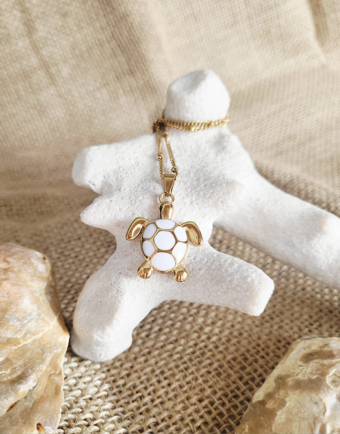 O colar Tartaruga Bianco é uma peça única e cheia de estilo, perfeita para quem aprecia a beleza da simplicidade. Este colar destaca-se pelo seu design elegante, que combina com qualquer look, seja casual ou mais formal. A tartaruga, símbolo de longevidade e sabedoria, traz consigo uma energia positiva, tornando este colar não apenas um acessório, mas também um amuleto especial para o seu dia-a-dia.