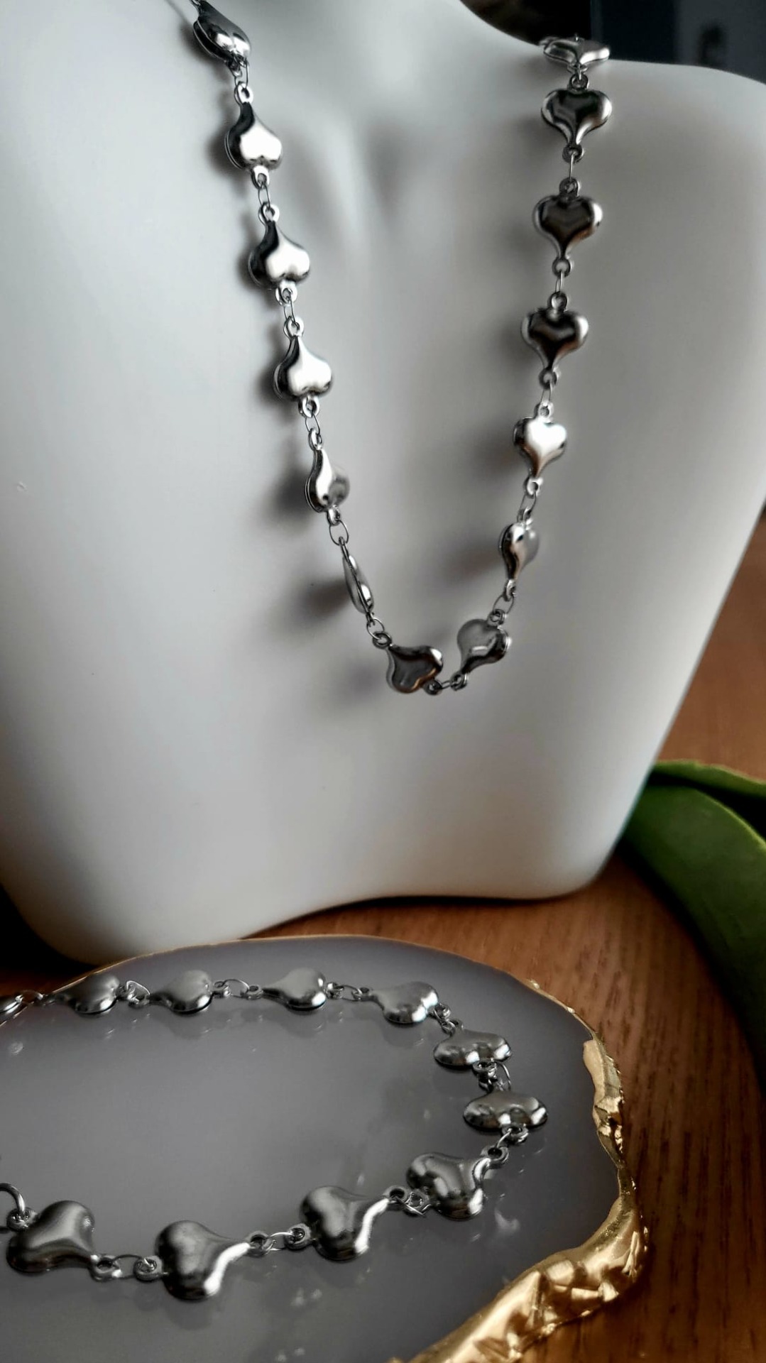A combinação perfeita para a sua elegância, o conjunto de colar e pulseira Amore é a escolha ideal para quem aprecia acessórios sofisticados. Com um design distintivo, cada peça reflete a beleza e o amor pelo detalhe. Ideal para qualquer ocasião, este conjunto acrescenta um toque de glamour ao seu estilo diário.