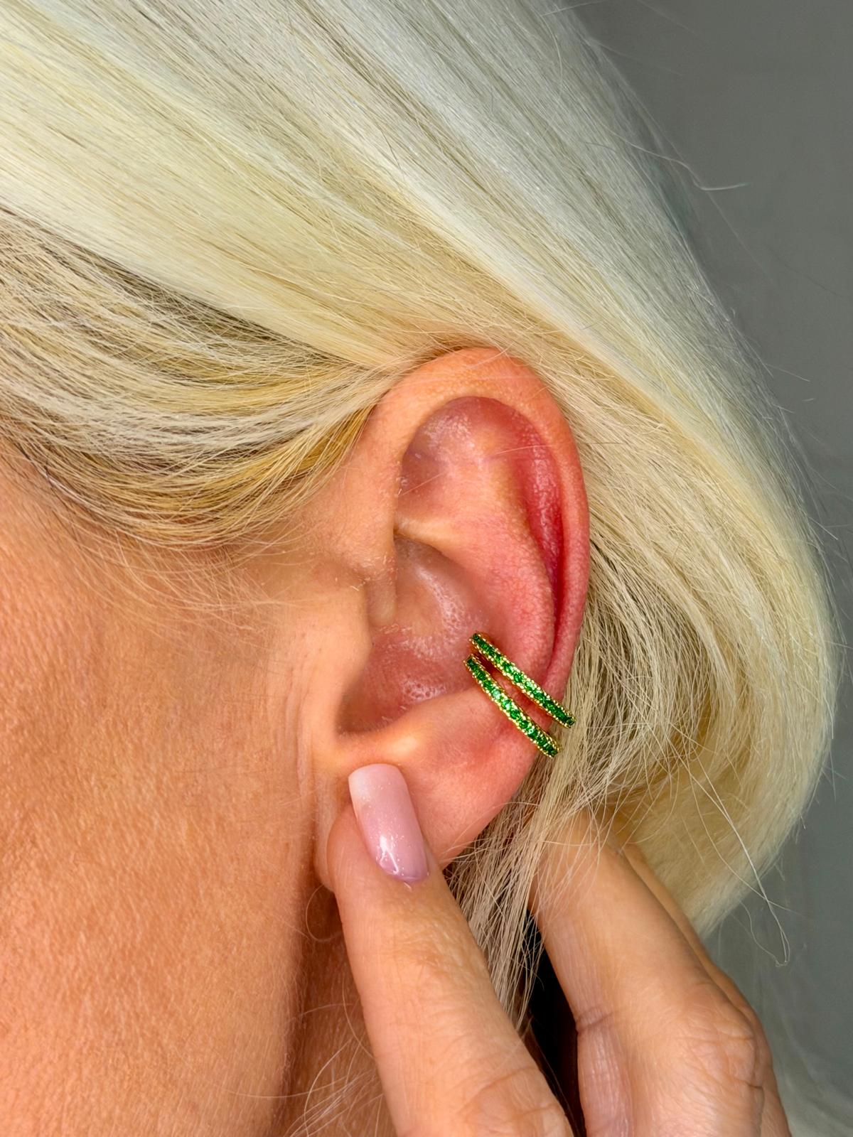 Os brincos cuffs Gioia Verde harmonizam facilmente com outros acessórios, criando mix de orelha únicos e cheios de atitude. São a escolha ideal para quem busca um acessório atual, delicado e com um toque de cor que ilumina o rosto.